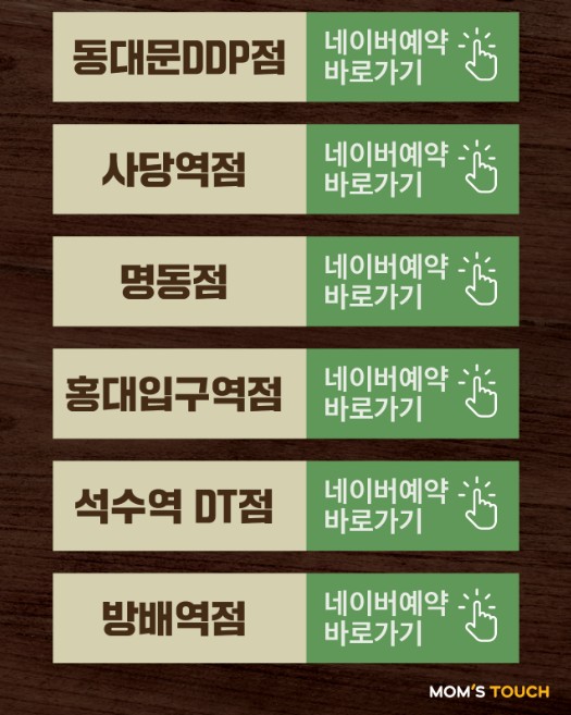 예약 방법 : 맘스터치 웹사이트와 12개의 직영점 네이버 예약을 통해 예약하시면 됩니다.
